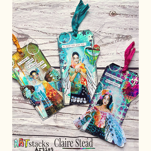 We are delighted to present the first project by our new design team member Claire Stead!  She is here today sharing a set of three gorgeous tags that she made using images from Tracy Verdugo’s Love Lives Here Artist Series pack.  Claire was captivated by Tracy’s gorgeous angel figures and thought that these tags were the perfect way to showcase their beauty.