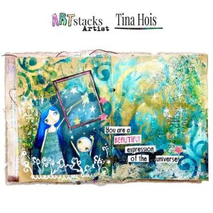 Lisa Oxley used images from two ArtStacks artists, Claire Stead and Tamara Laporte, to make this stunning art journal page! We love how she still manages to add her own unique style to it to make this a uniquely Lisa Oxley page!