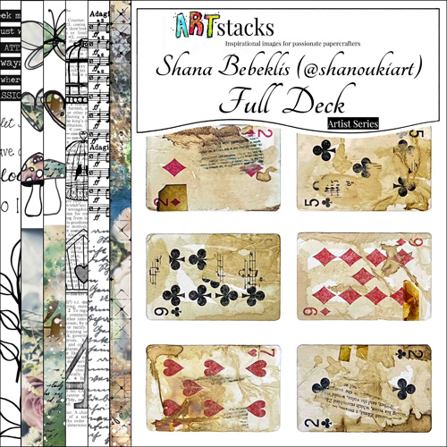 Shana probably didn’t realise what she was in for when she started up the Full Deck Challenge group on Facebook! A whole community now joins her in altering playing cards. This pack contains double-sided playing cards for you to cut out plus backgrounds and images to add to them, all on an amazing variety of interesting papers.